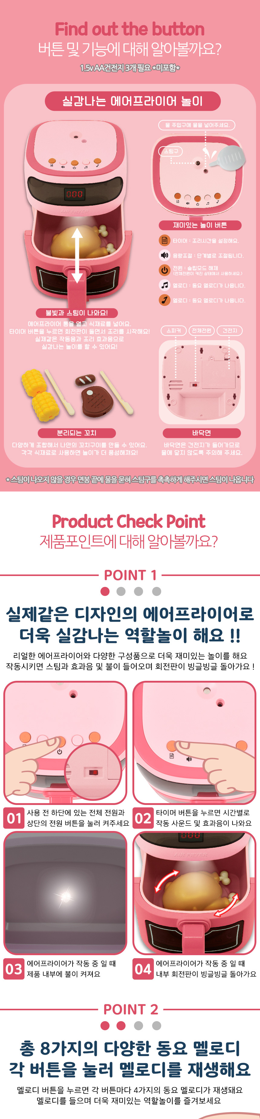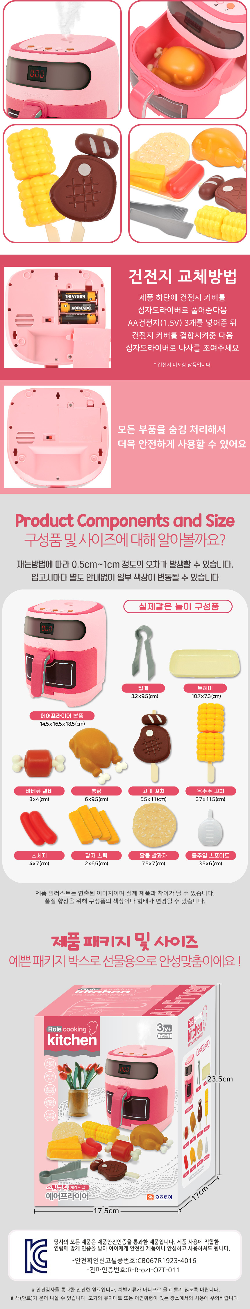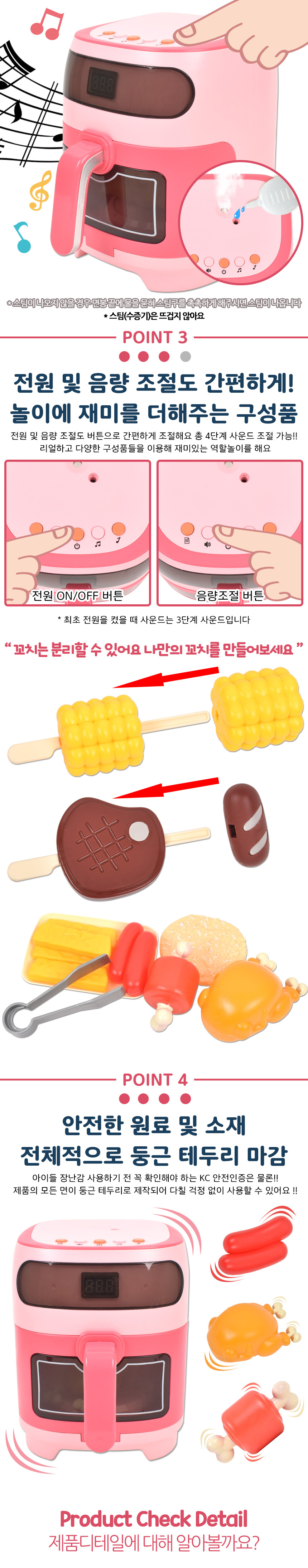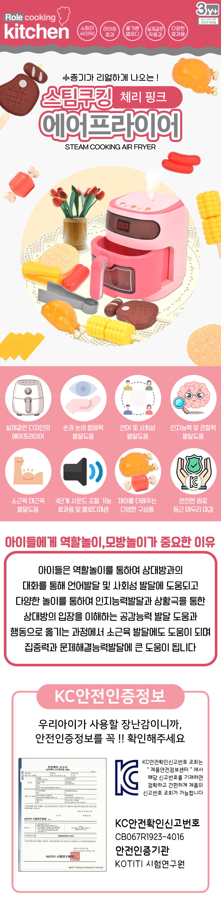 T 수증기가 나오는 스팀 쿠킹 에어프라이어 체리핑크 oz-3340 pink 소꿉 주방 놀이 소품