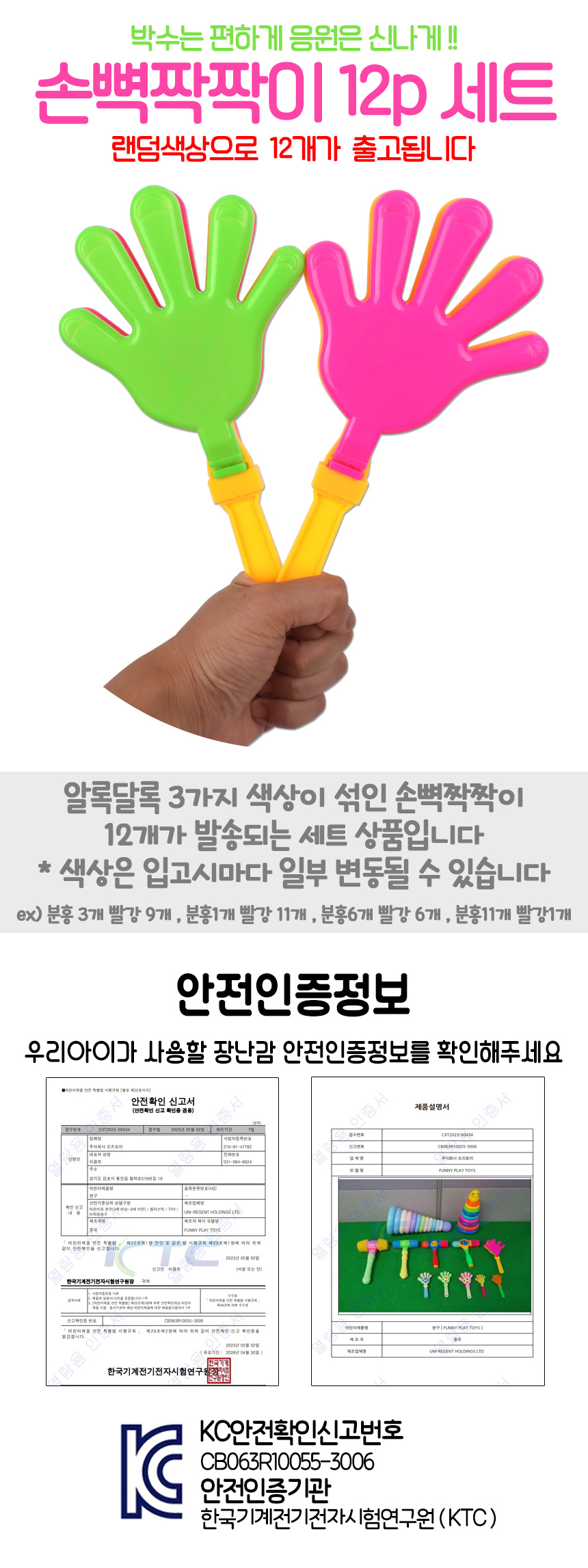 # 아가소리 손뼉짝짝이 12개세트 hp138ax12p 응원용 응원도구 응원용품 짝짝이 손바닥