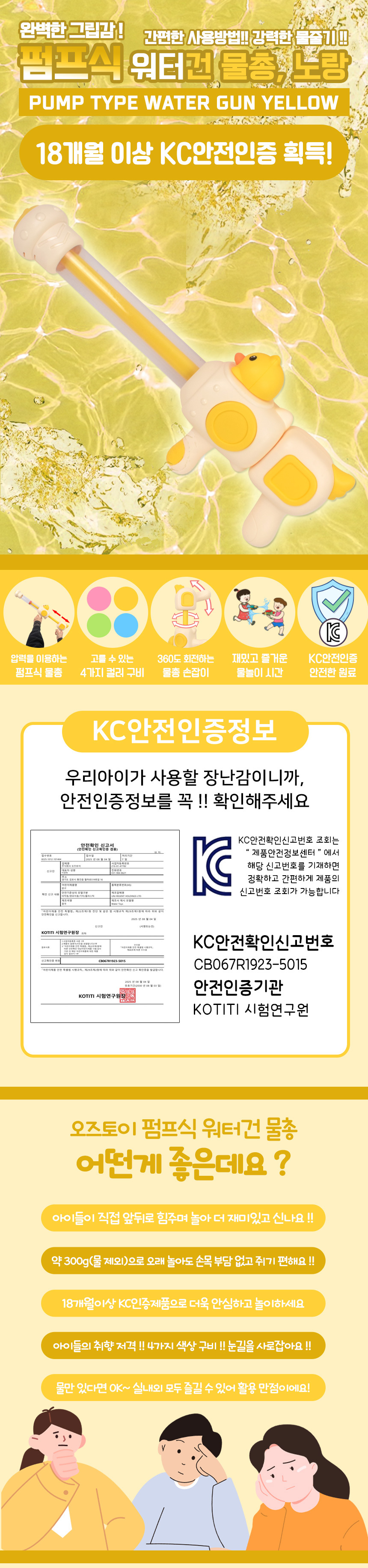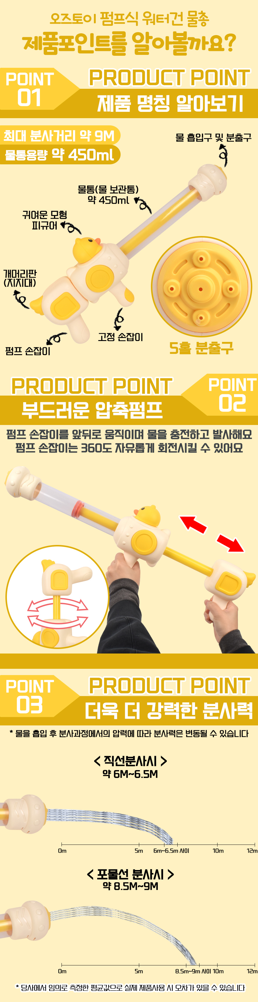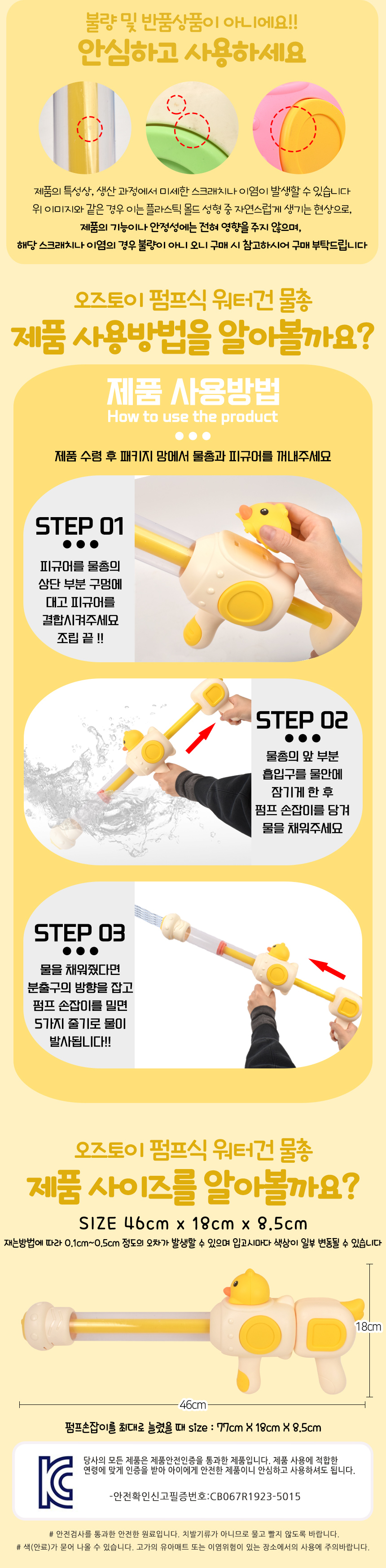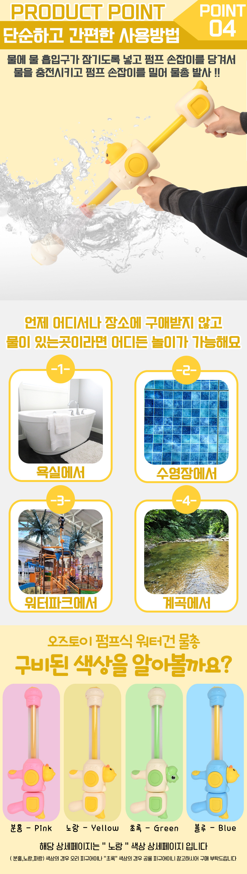 # 펌프식 워터건 물총 노랑 6607 yellow 오리 목욕놀이 물놀이 수영장 해수욕장 야외 장난감