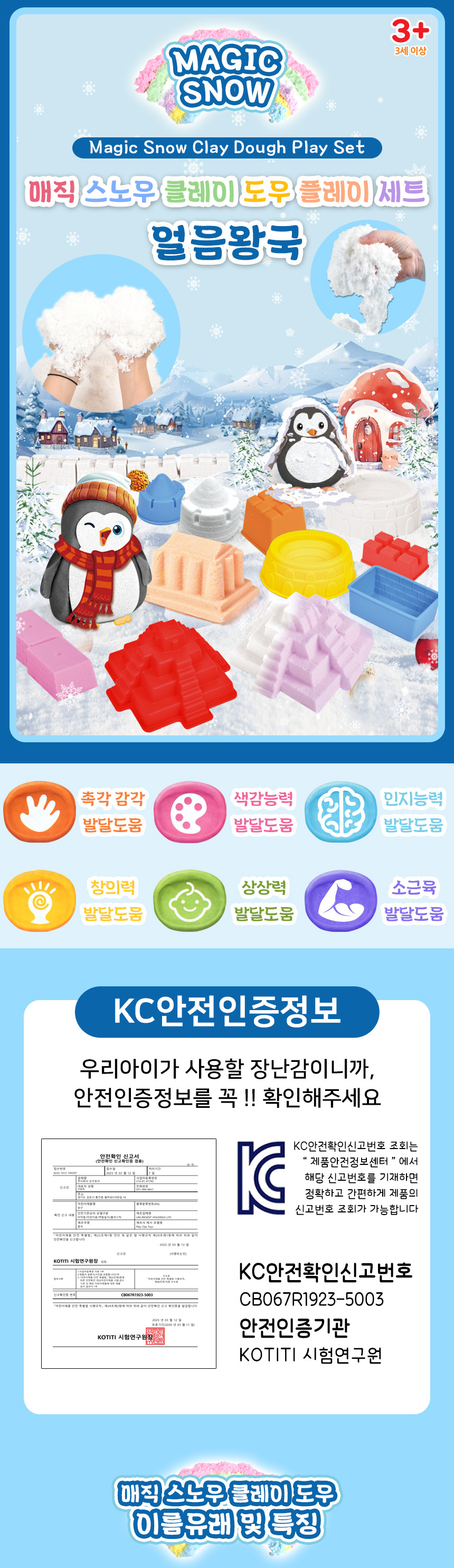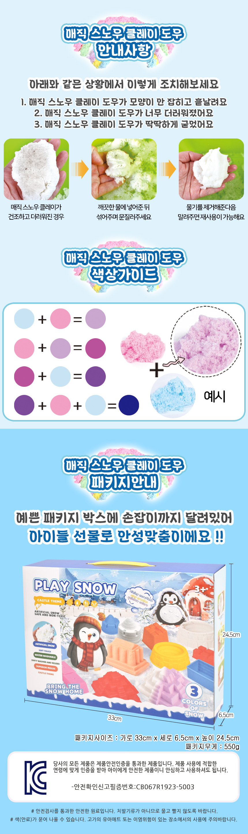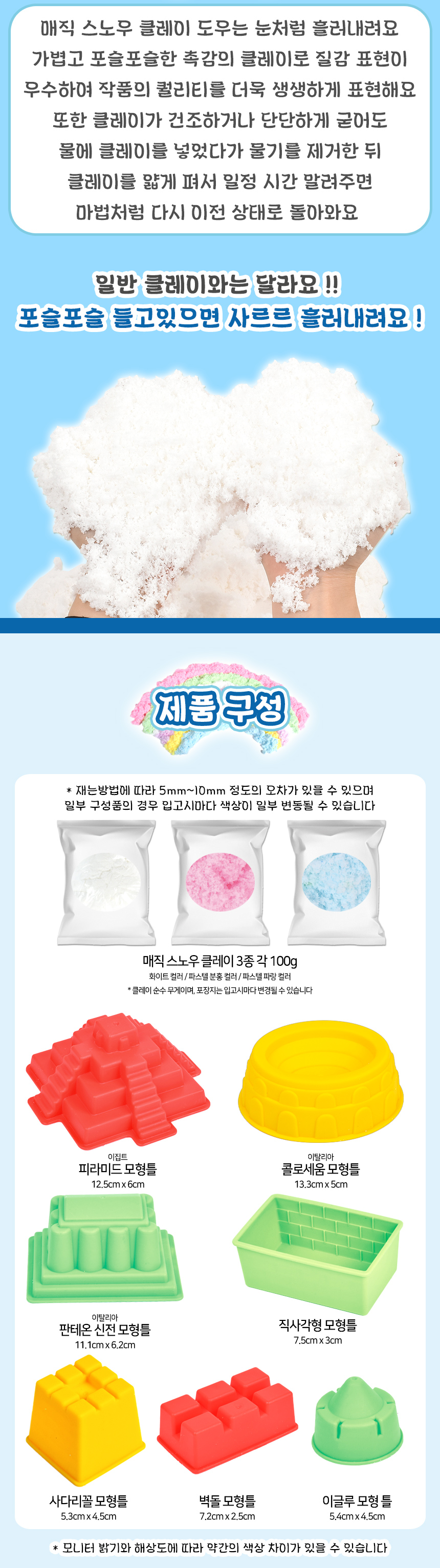 T 매직 스노우 클레이 도우 플레이 세트 얼음왕국 lc45-2d 점토 촉감발달 퍼티 교재 교구