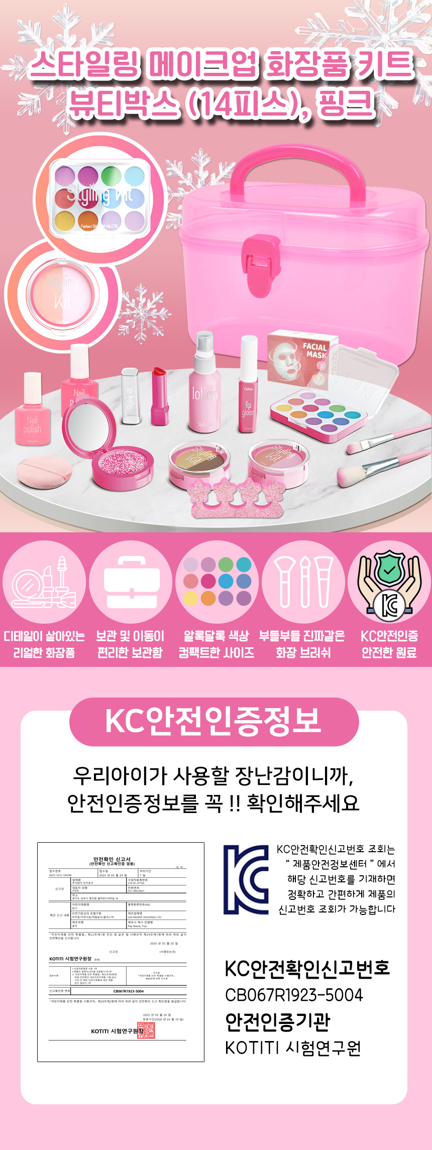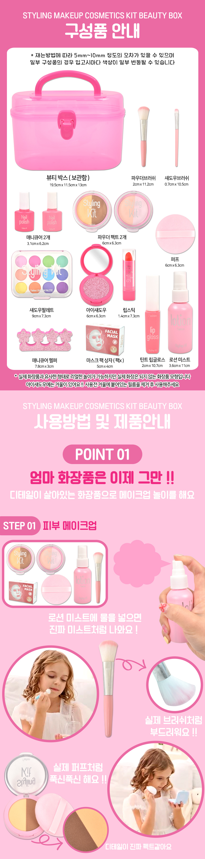 T 스타일링 메이크업 화장품 뷰티박스 14종 세트 핑크 (분홍) 598035 공주 악세서리 미용 놀이