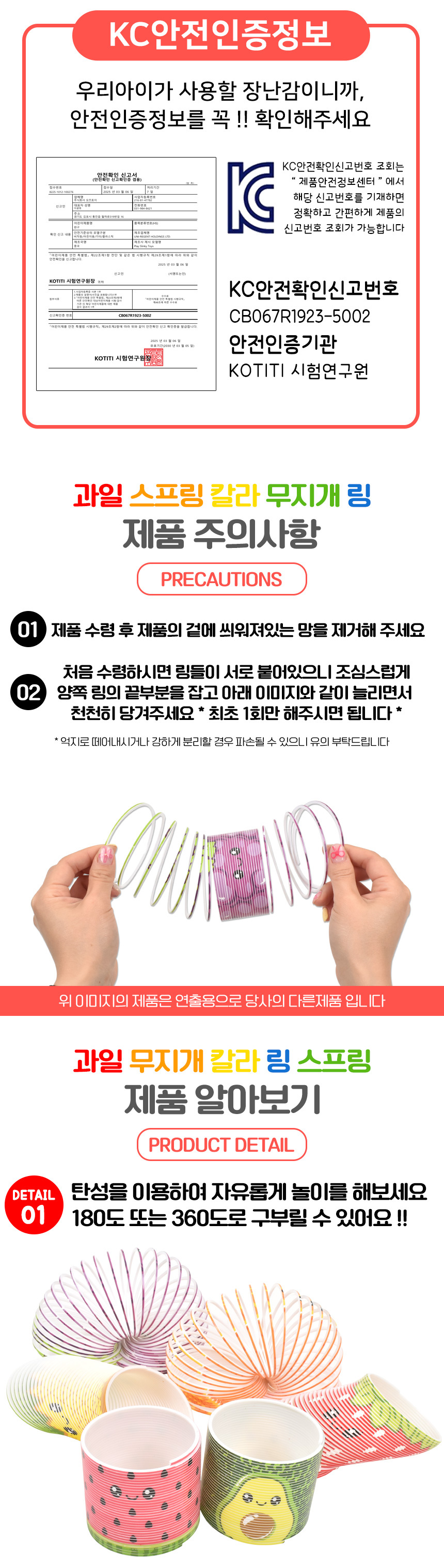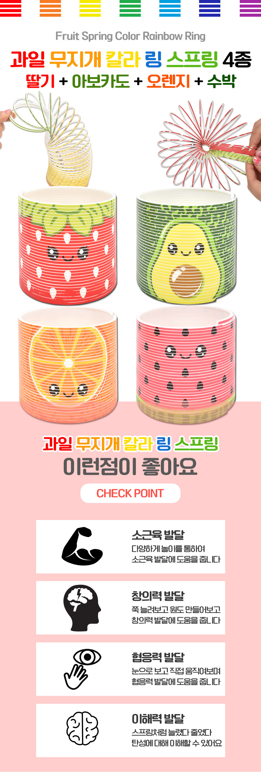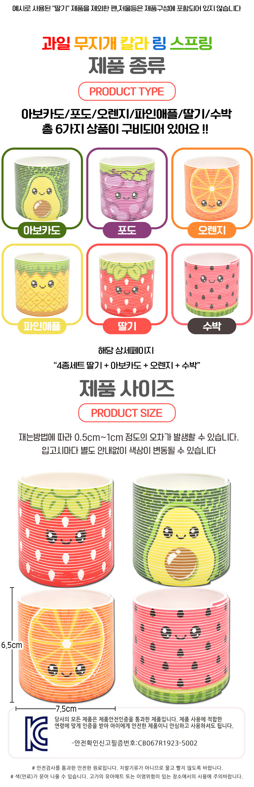 # 과일 무지개 칼라 링 스프링 4종 세트 딸기 아보카도 오렌지 수박 sm76-48 a 컬러 슬링키