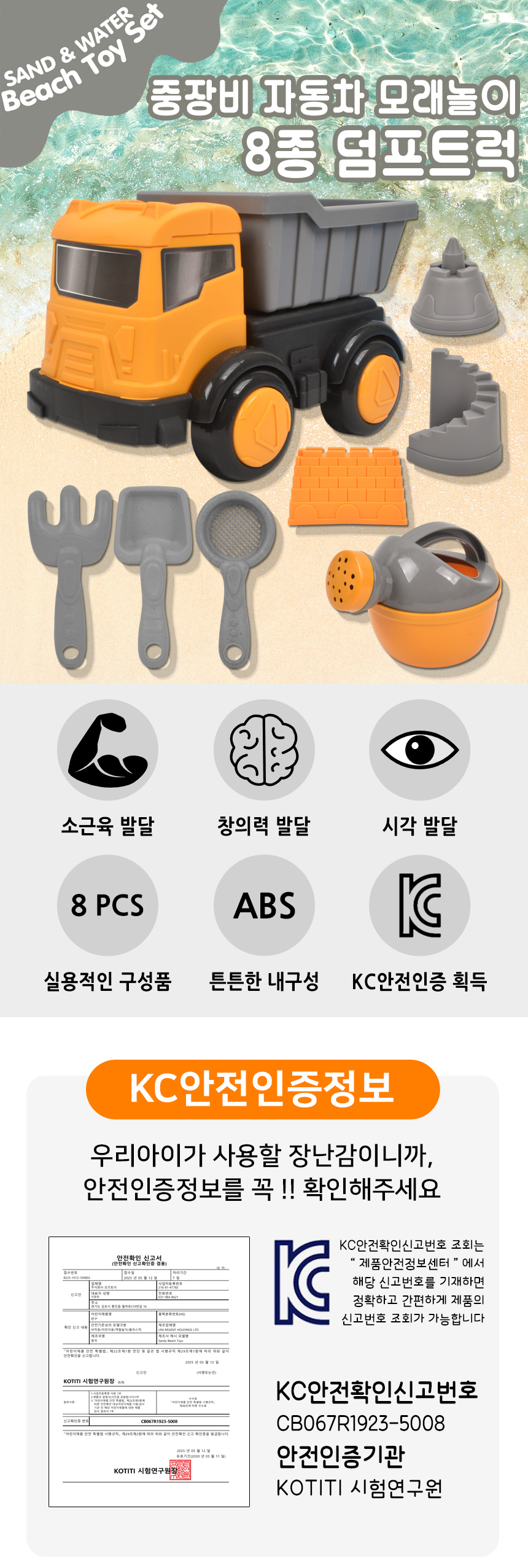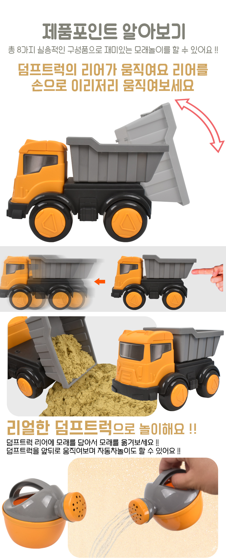 # 샌디토이 중장비 자동차 모래놀이 8종 덤프트럭 lxs314 물뿌리개 바스켓 모래삽 모양틀