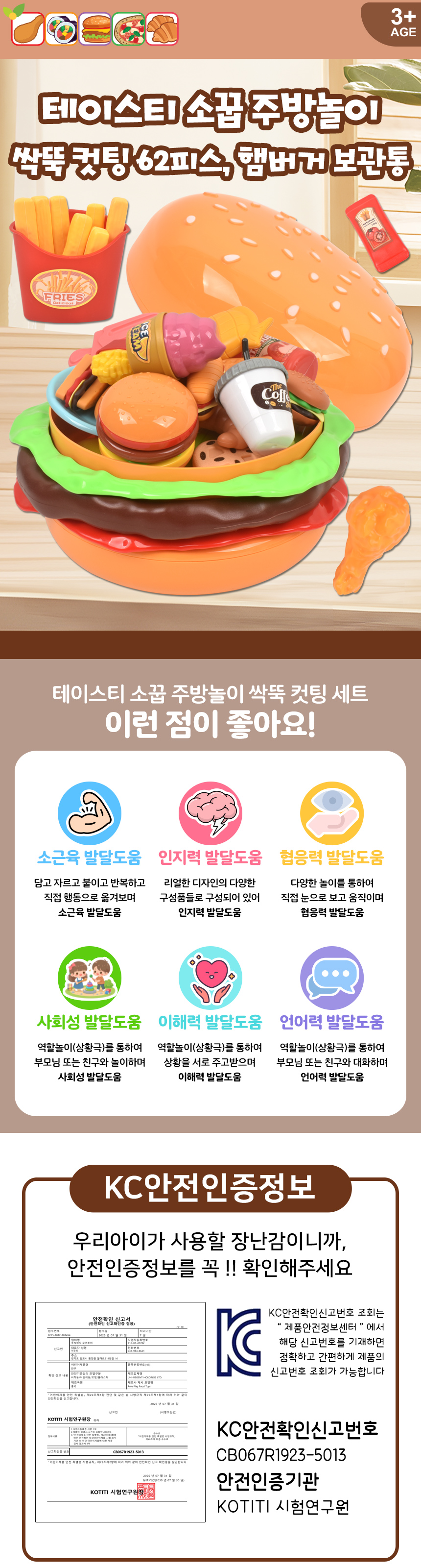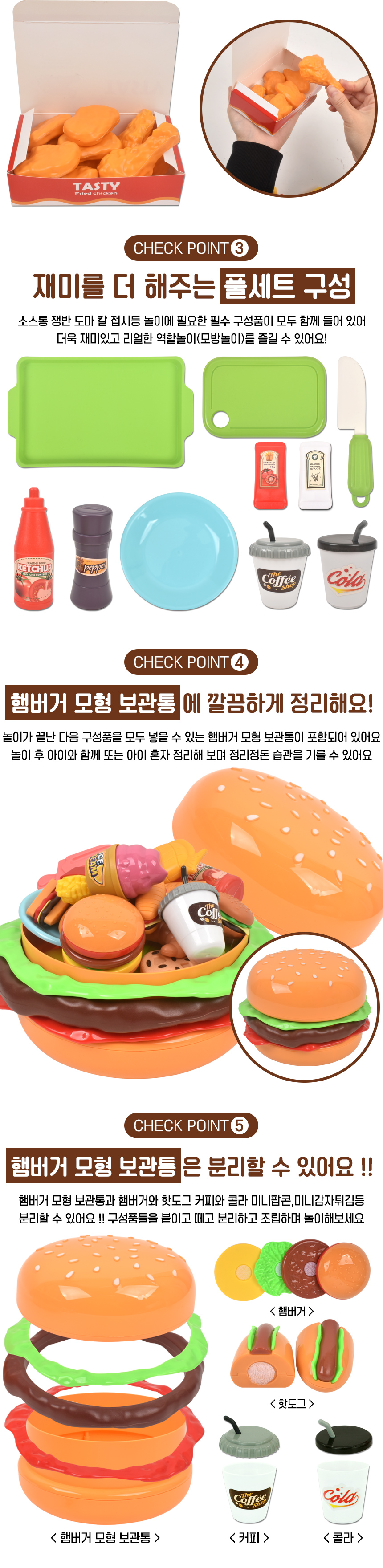 T 테이스티 싹뚝 컷팅 햄버거 보관통 소꿉 주방놀이 62p 세트 cb-599y9 음식 모형 마트 썰기