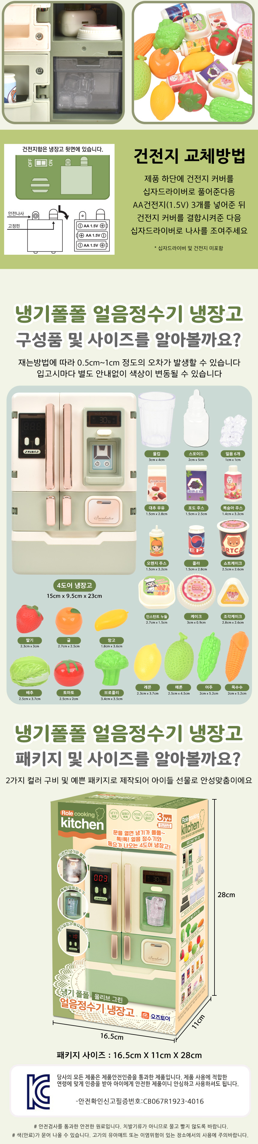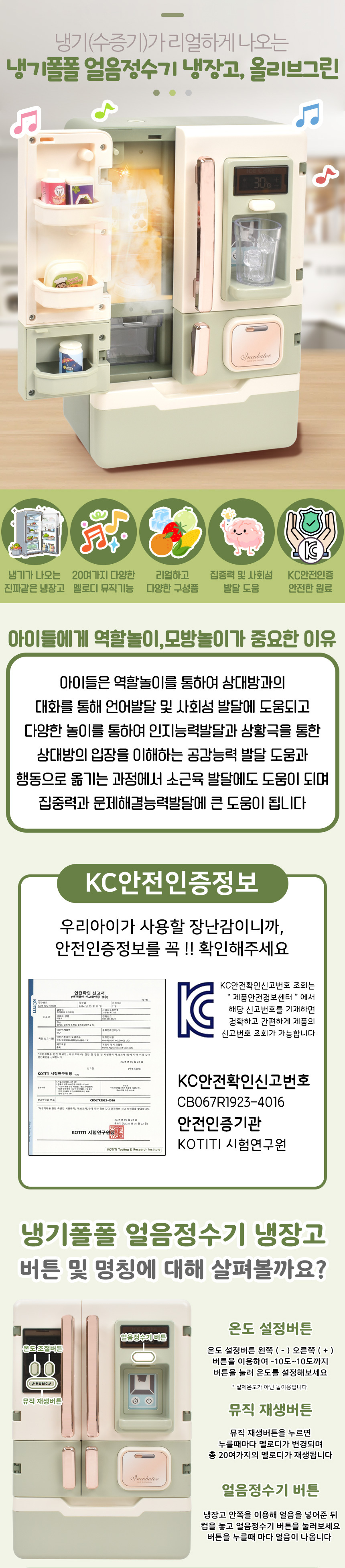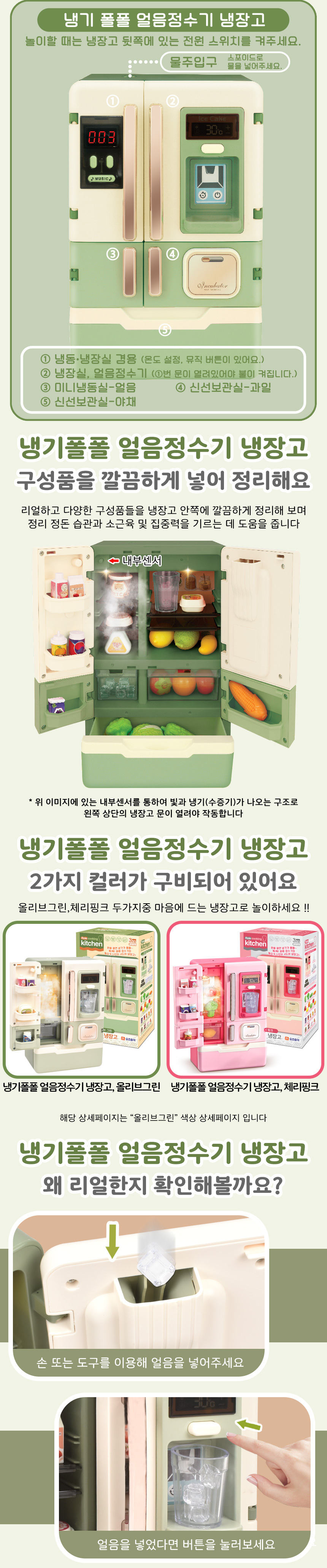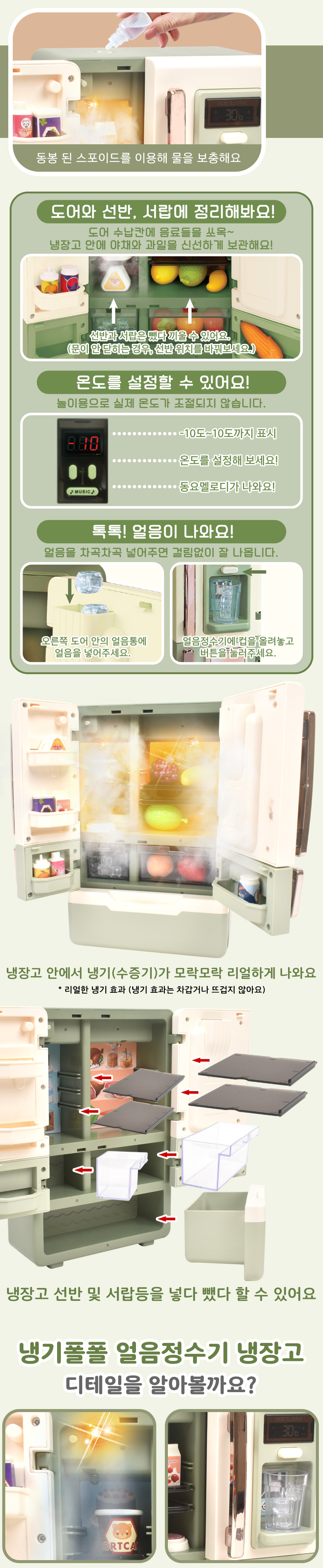 T 냉기폴폴 얼음 정수기 냉장고 올리브그린 oz-4010 green 소꿉 주방 놀이 소품 선물