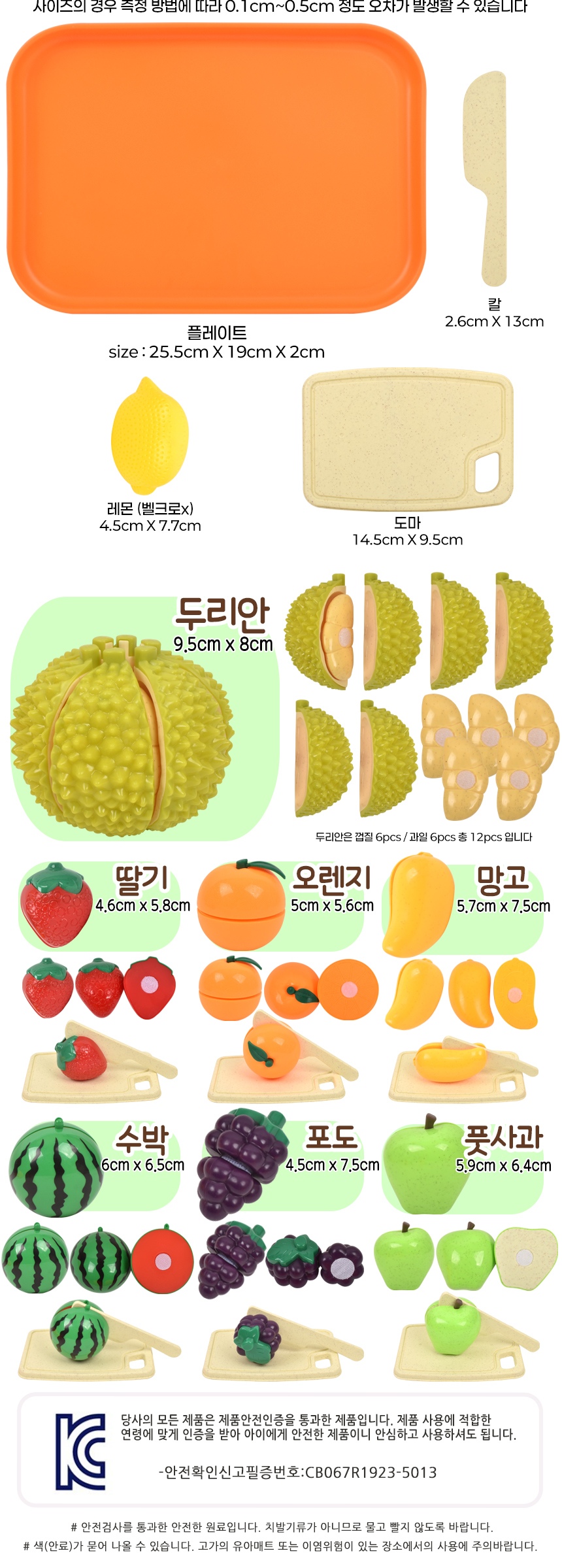 T 플레이트 썰기 소꿉 주방놀이 두리안 세트 w8015 쟁반 음식 모형 마트 역할 장난감