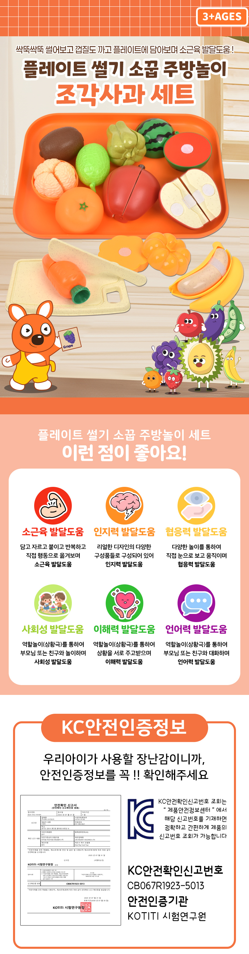 T 플레이트 썰기 소꿉 주방놀이 조각사과 세트 w8016 쟁반 음식 모형 마트 역할 장난감