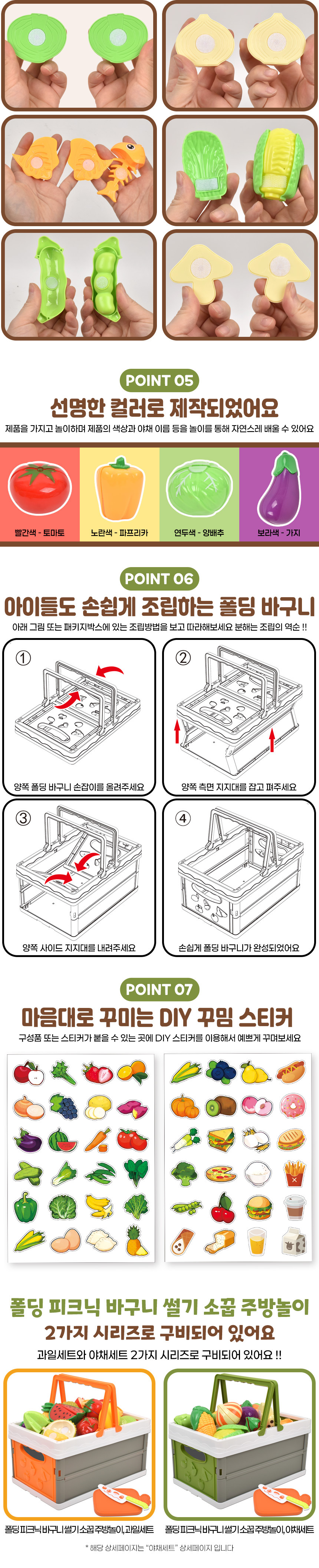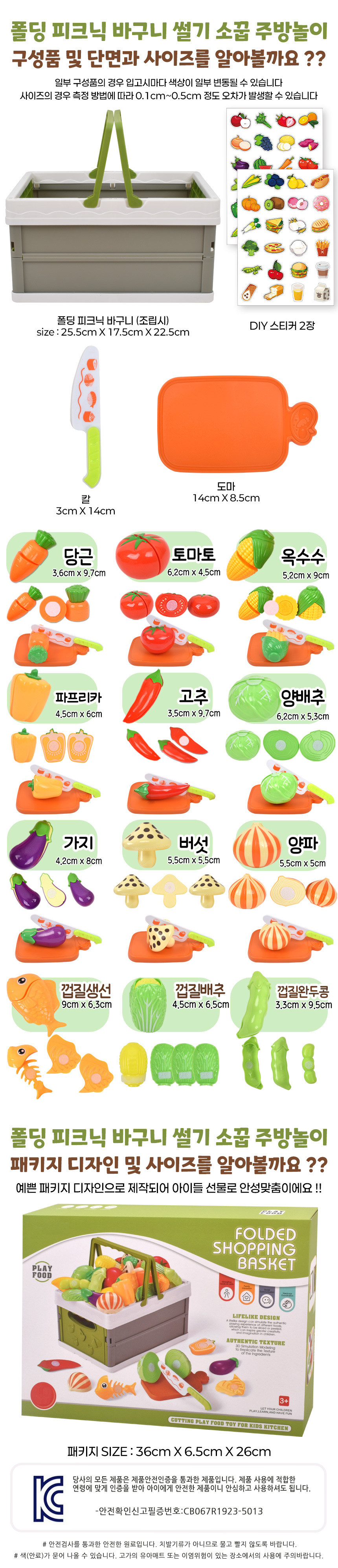 T 폴딩 피크닉 바구니 썰기 소꿉 주방놀이 야채세트 cf-77 음식 모형 마트 역할 장난감