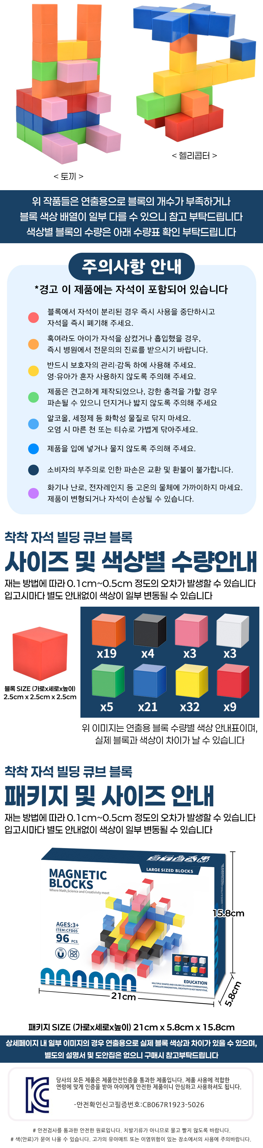 # 착착 자석 빌딩 큐브 블록 불투명 96피스 cfd05 마이 네모 블럭 마그넷 교재 교구