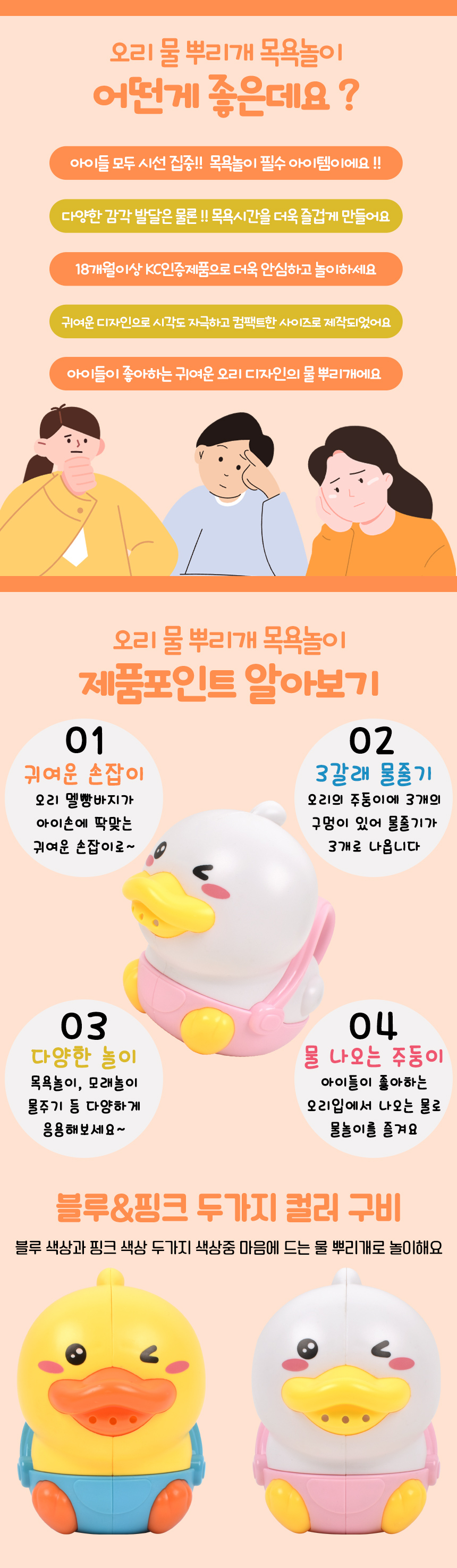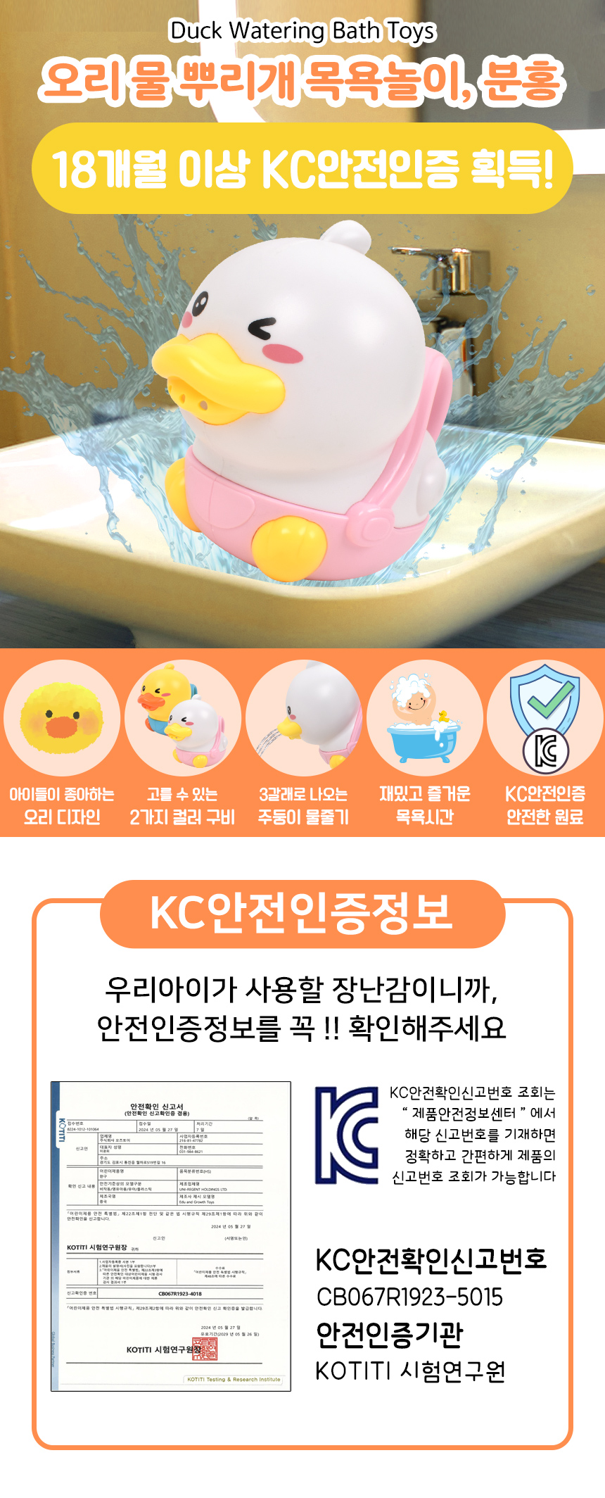 T 오리 물 뿌리개 목욕놀이 장난감 분홍 0725 pink 물조리개 완구