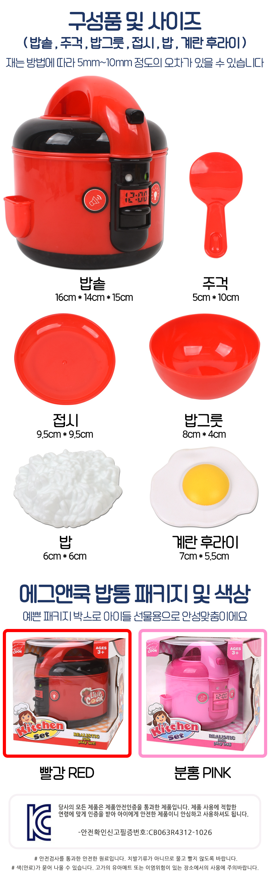 T 에그앤쿡 멜로디 밥통 소꿉놀이 빨강 5541 계란후라이 밥모형 주방 음식 모형 소품