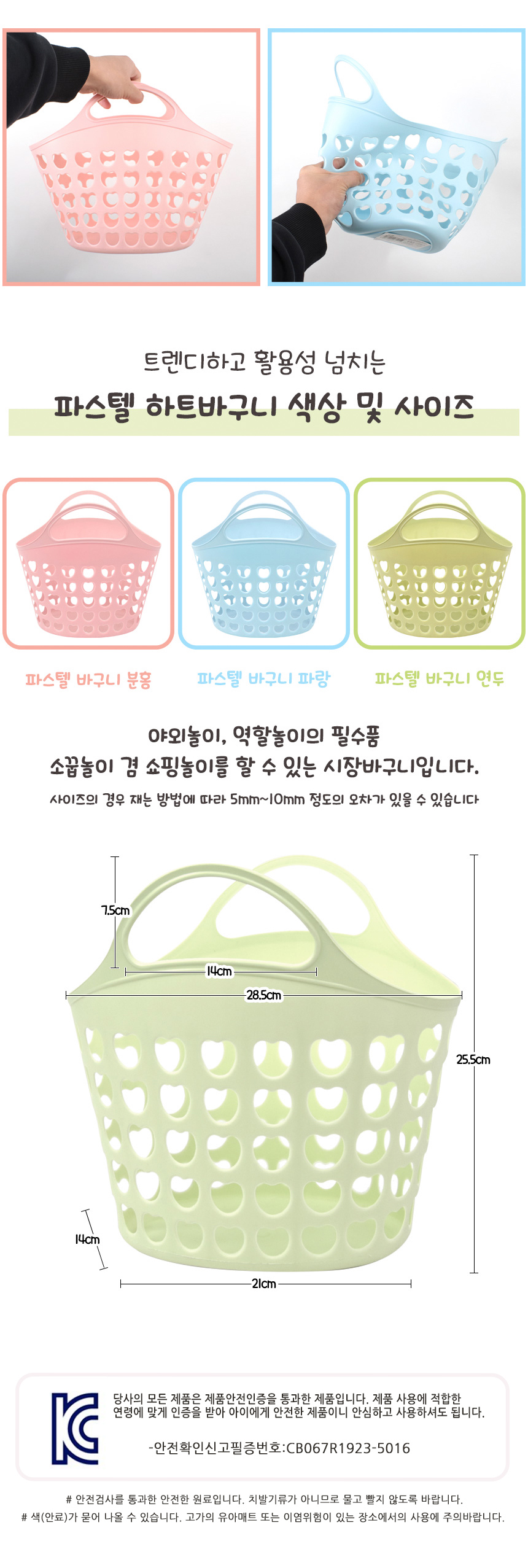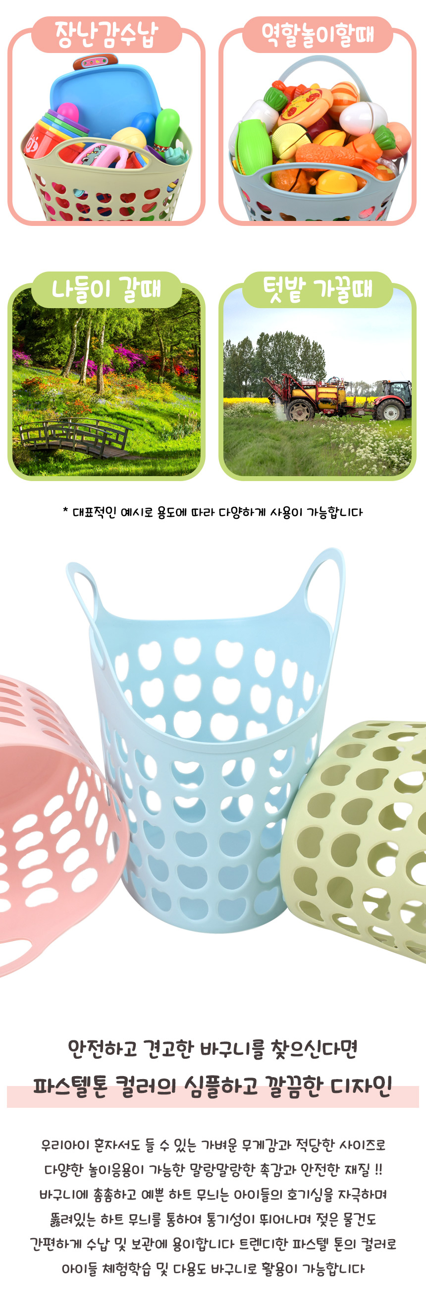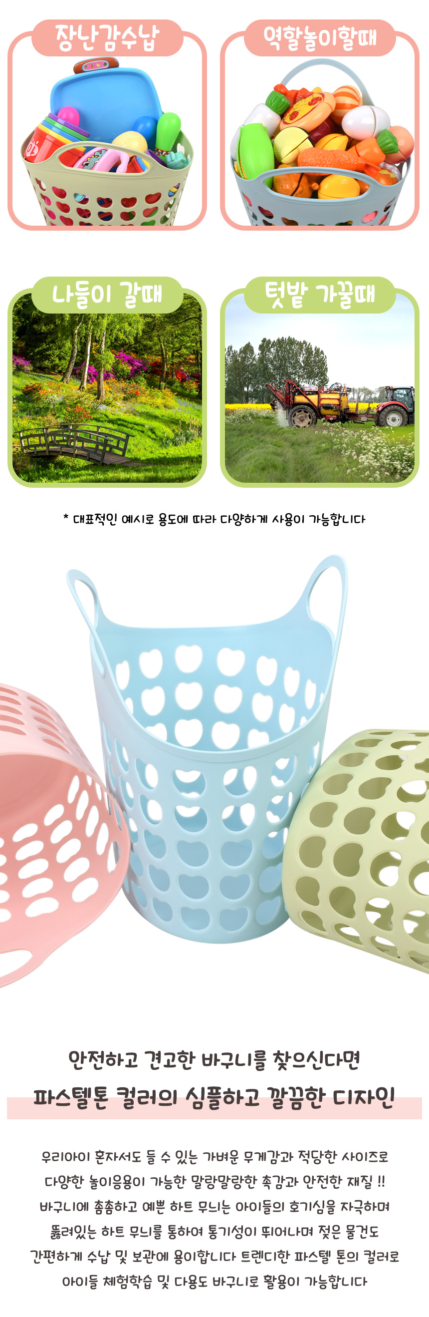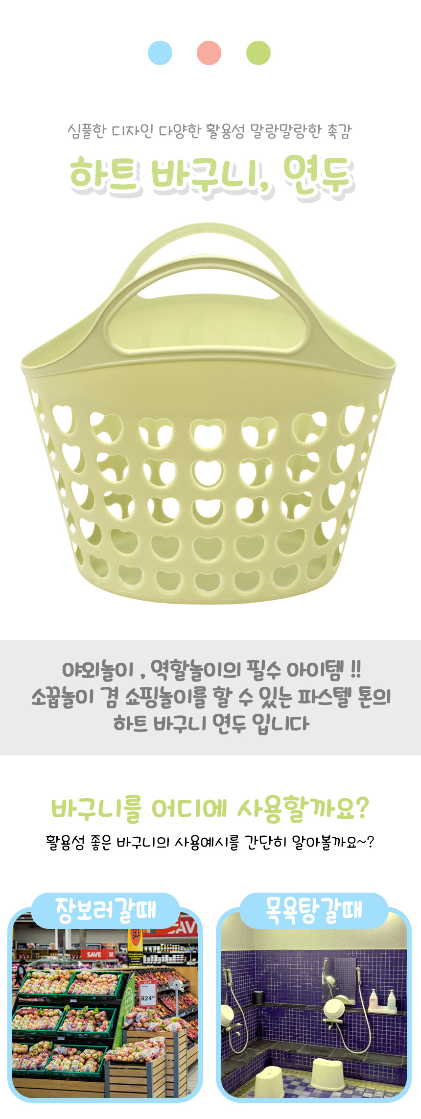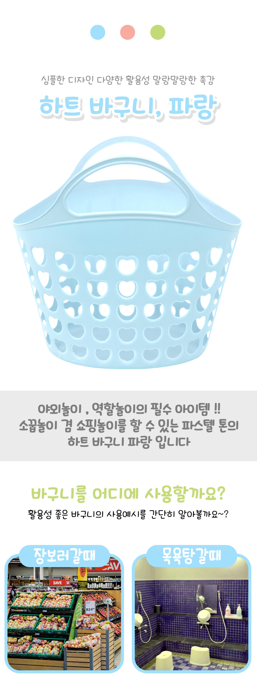 T 파스텔 하트 바구니 분홍 파랑 초록 c-703011 소꿉 주방 목욕 놀이 소품
