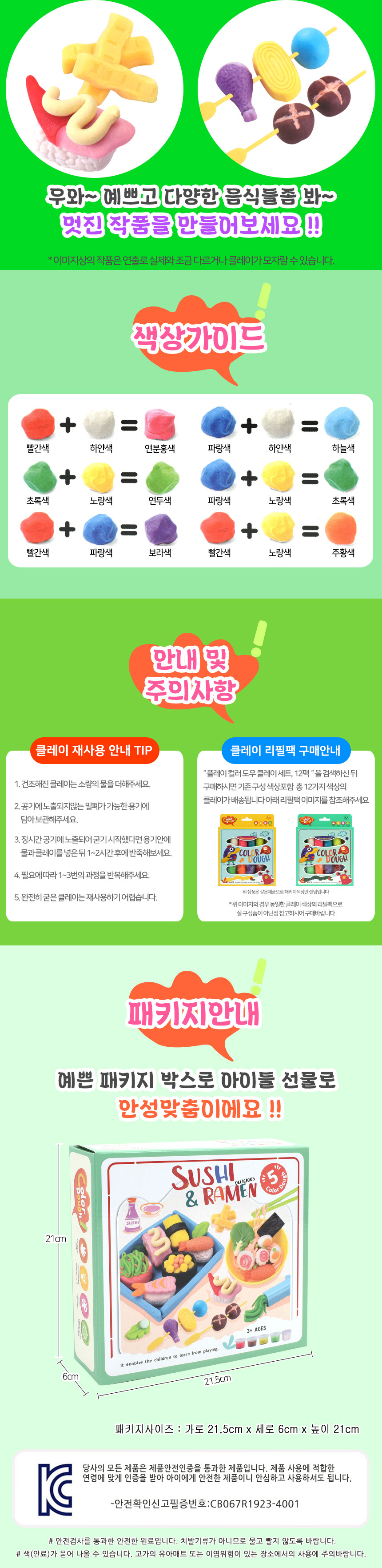 T 플레이 컬러 도우 클레이 세트, 초밥&라면 5831-b 클레이놀이 촉감발달 점토 교육완구