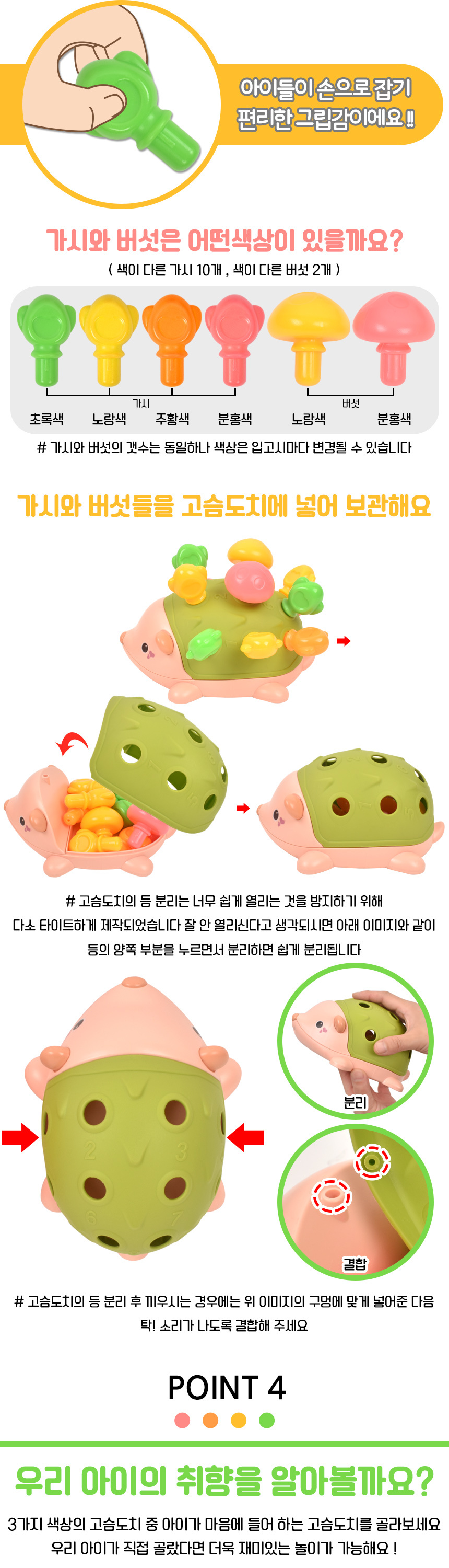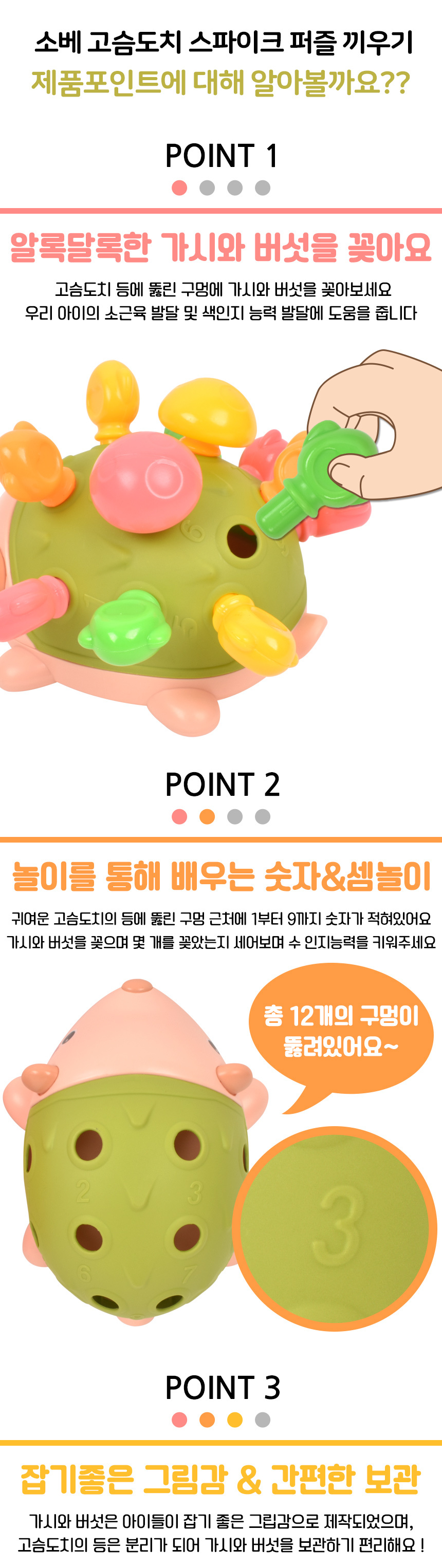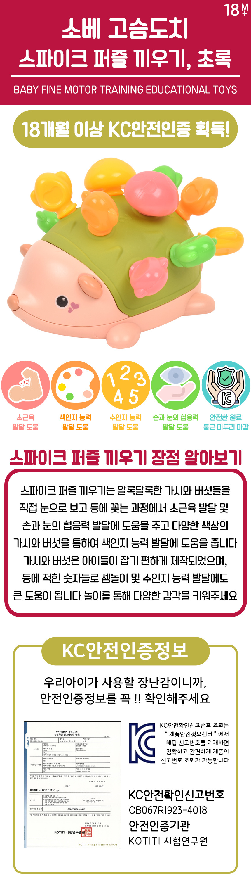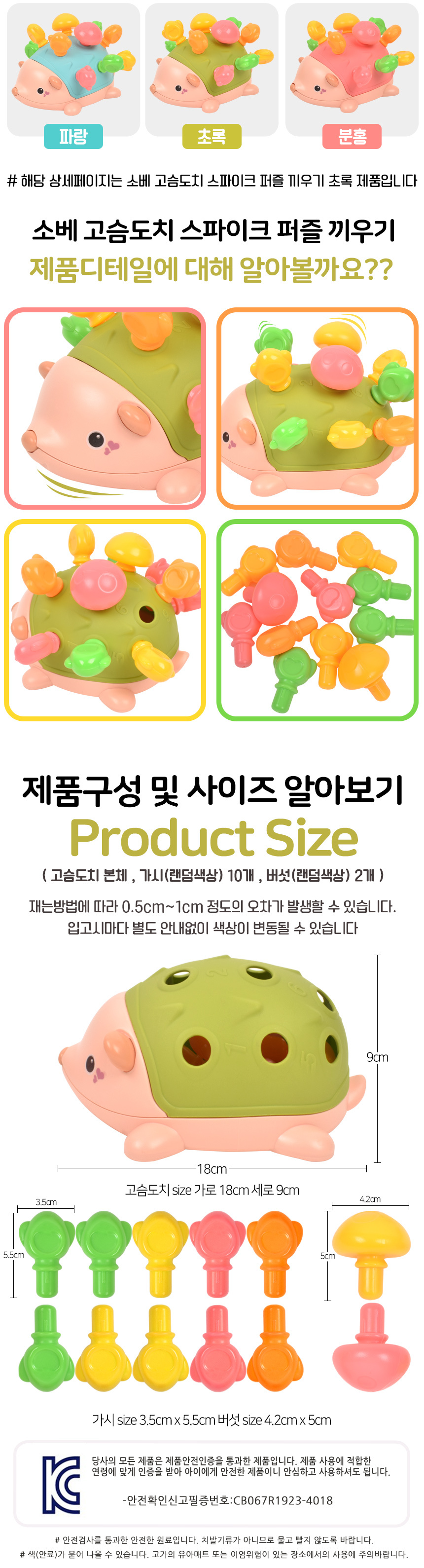 # 오즈토이 소베 고슴도치 스파이크 퍼즐 끼우기 완구 초록 yl1022-56 green 18개월 튼튼 소근육 손감각 발달