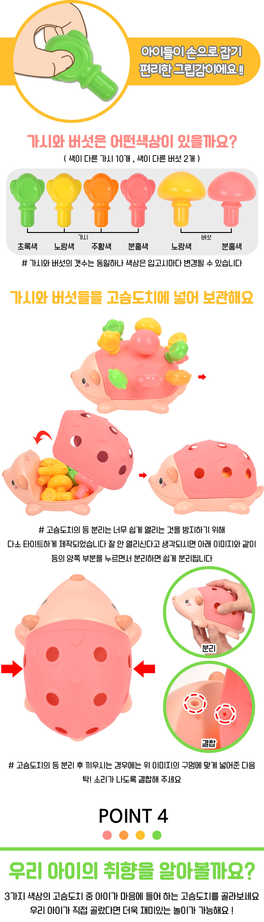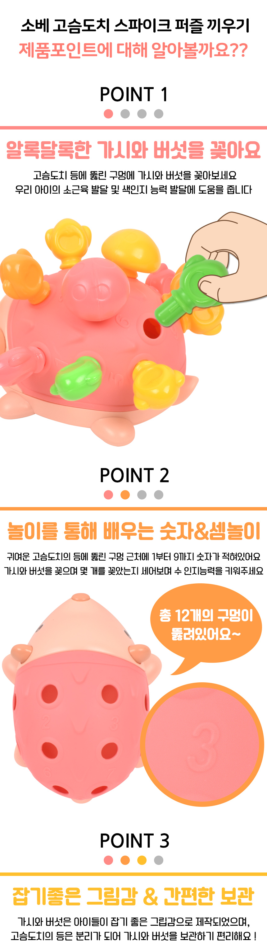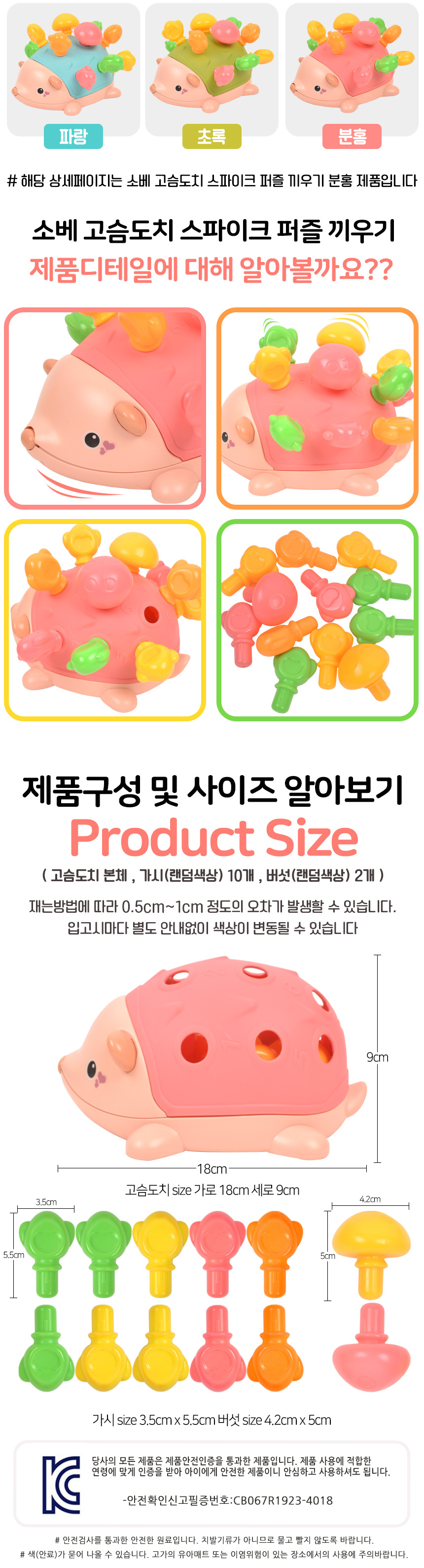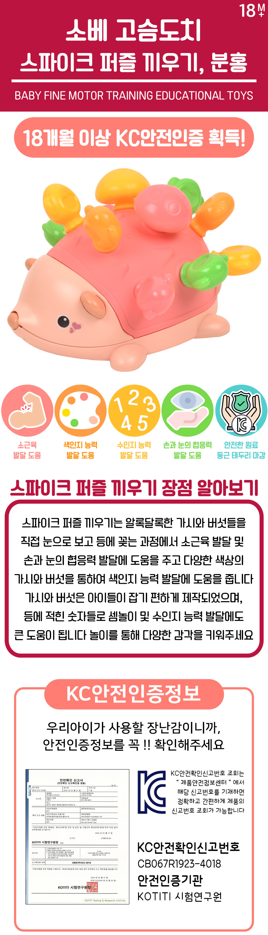 # 오즈토이 소베 고슴도치 스파이크 퍼즐 끼우기 완구 분홍 yl1022-56 pink 18개월 튼튼 소근육 손감각 발달