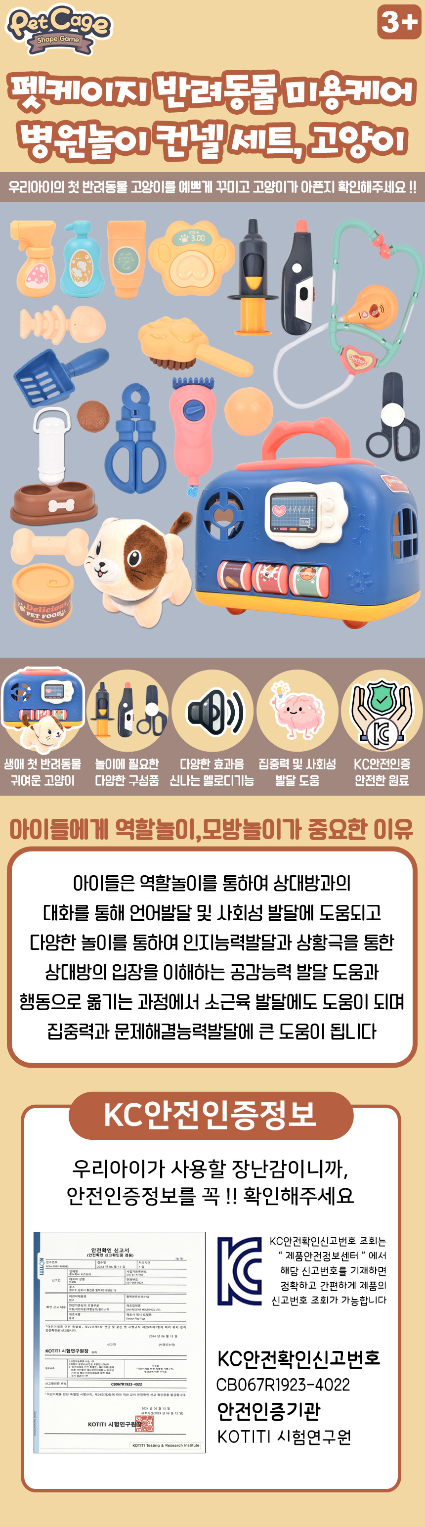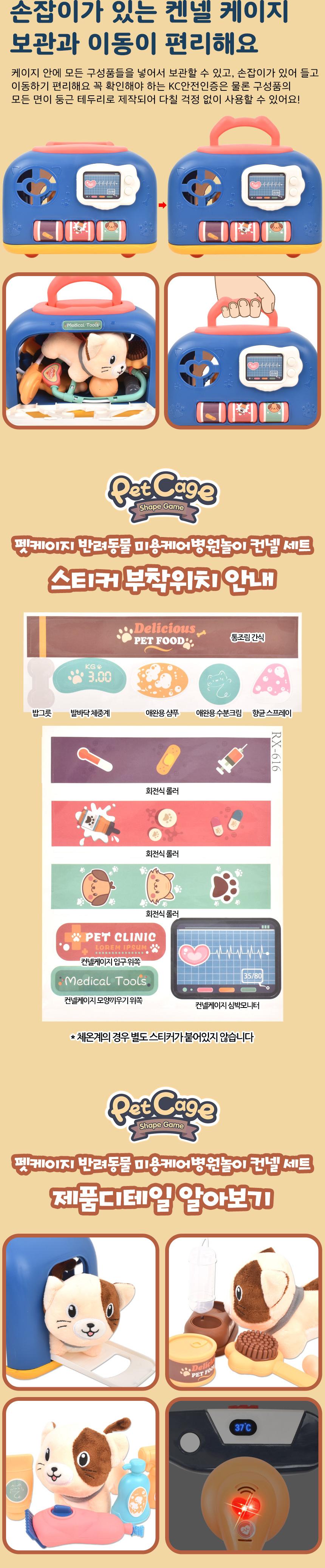 T 펫케이지 반려동물 미용케어 병원놀이 켄넬 세트 고양이 rx-818c 애착인형 이동장