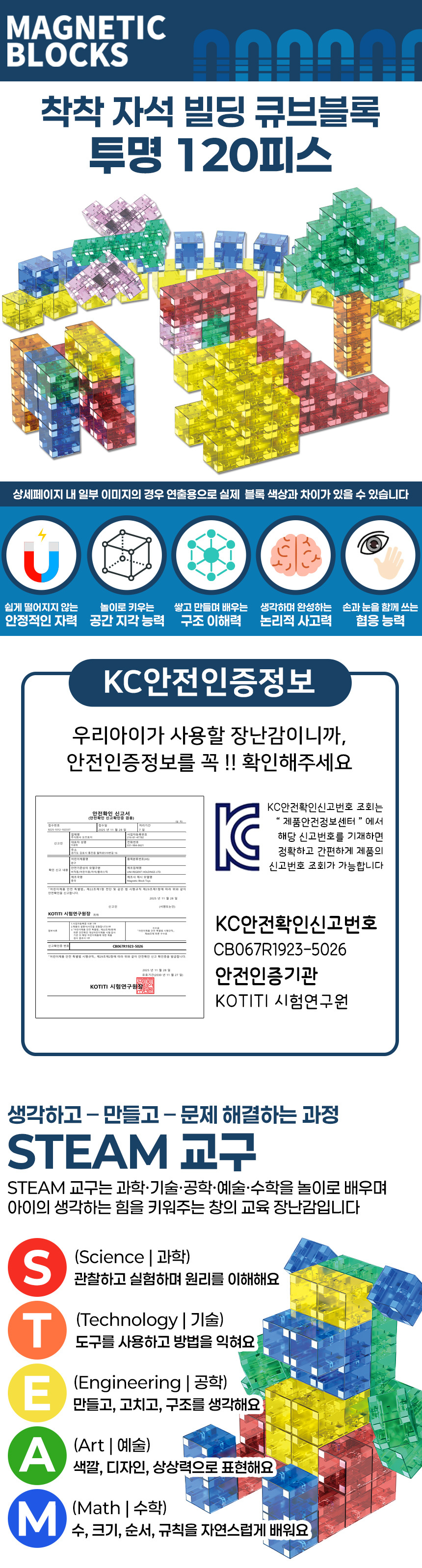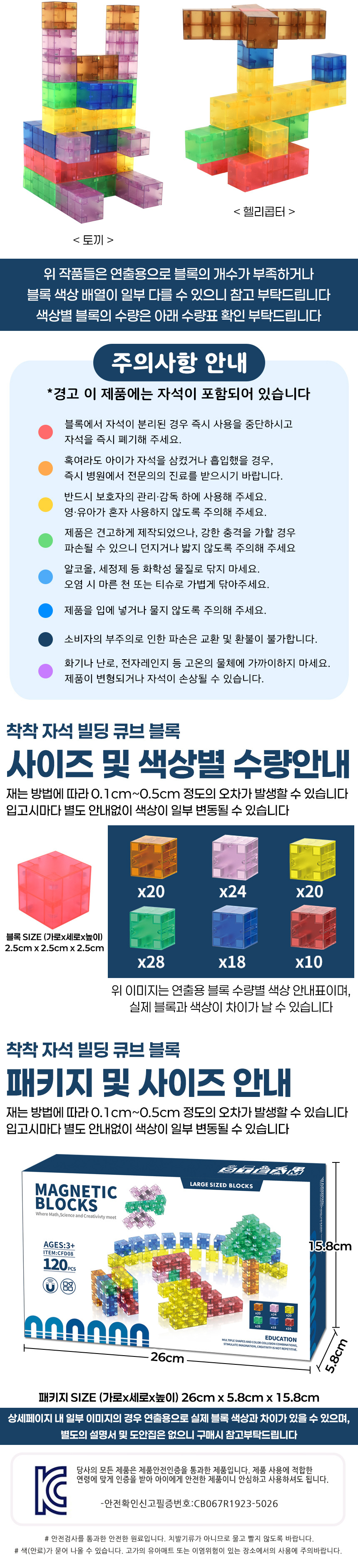 # 착착 자석 빌딩 큐브 블록 투명 120피스 cfd08 마이 네모 블럭 마그넷 교재 교구